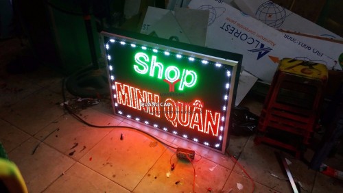 Biển hộp đèn LED: Thi công hộp đèn quảng cáo (chất liệu mica, bạt Hiflex, hiflex ốp alu) với hệ thống đèn LED siêu sáng, giúp biển hiệu luôn rực rỡ cả ngày lẫn đêm.